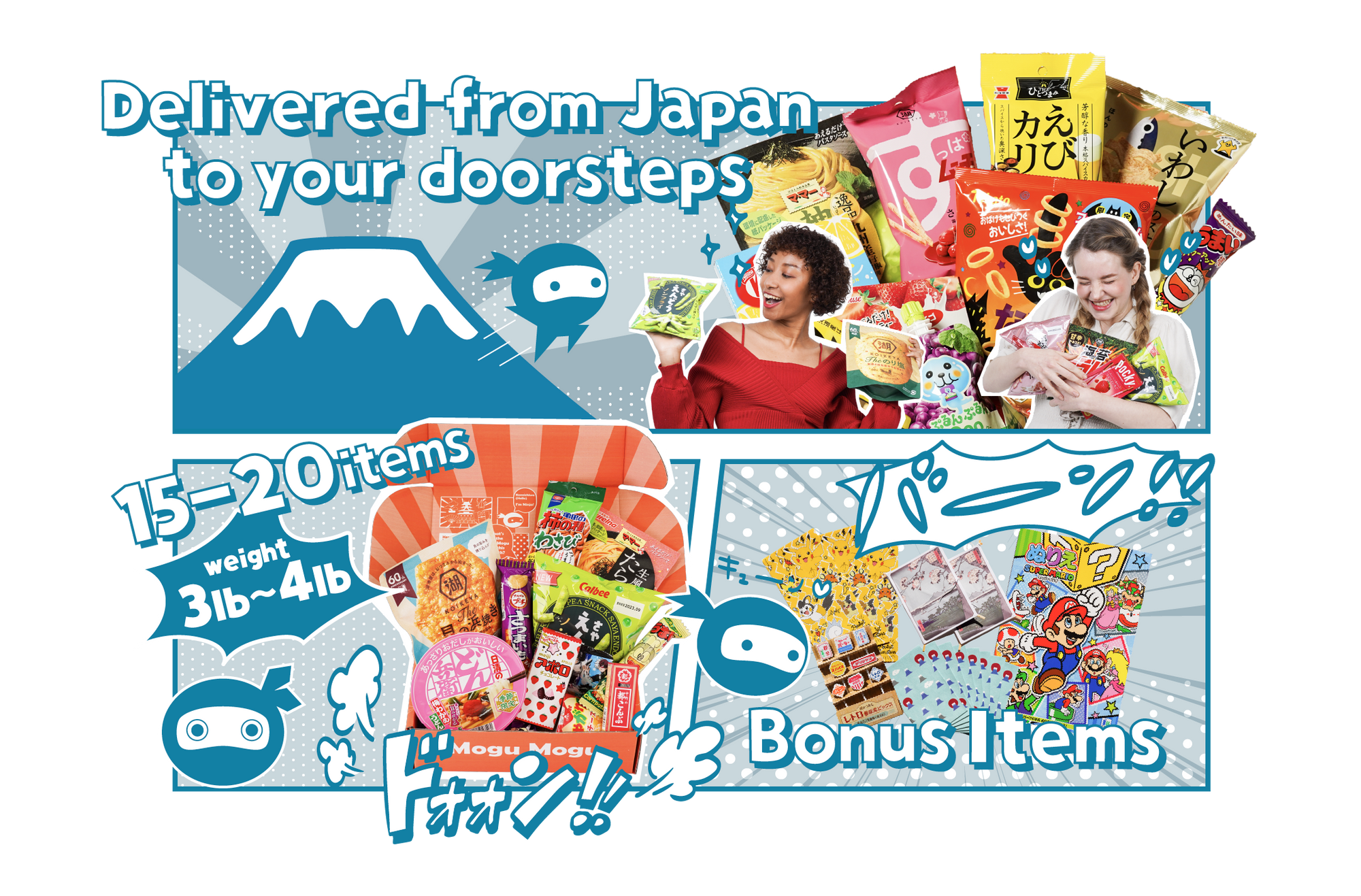 JapanYummies will deliver trendy, popular and unique snacks and foods to you so that you can experience Japan. Sometimes we'll include small goodies as special items, hoping to bring an extra spark of happiness to your daily life.